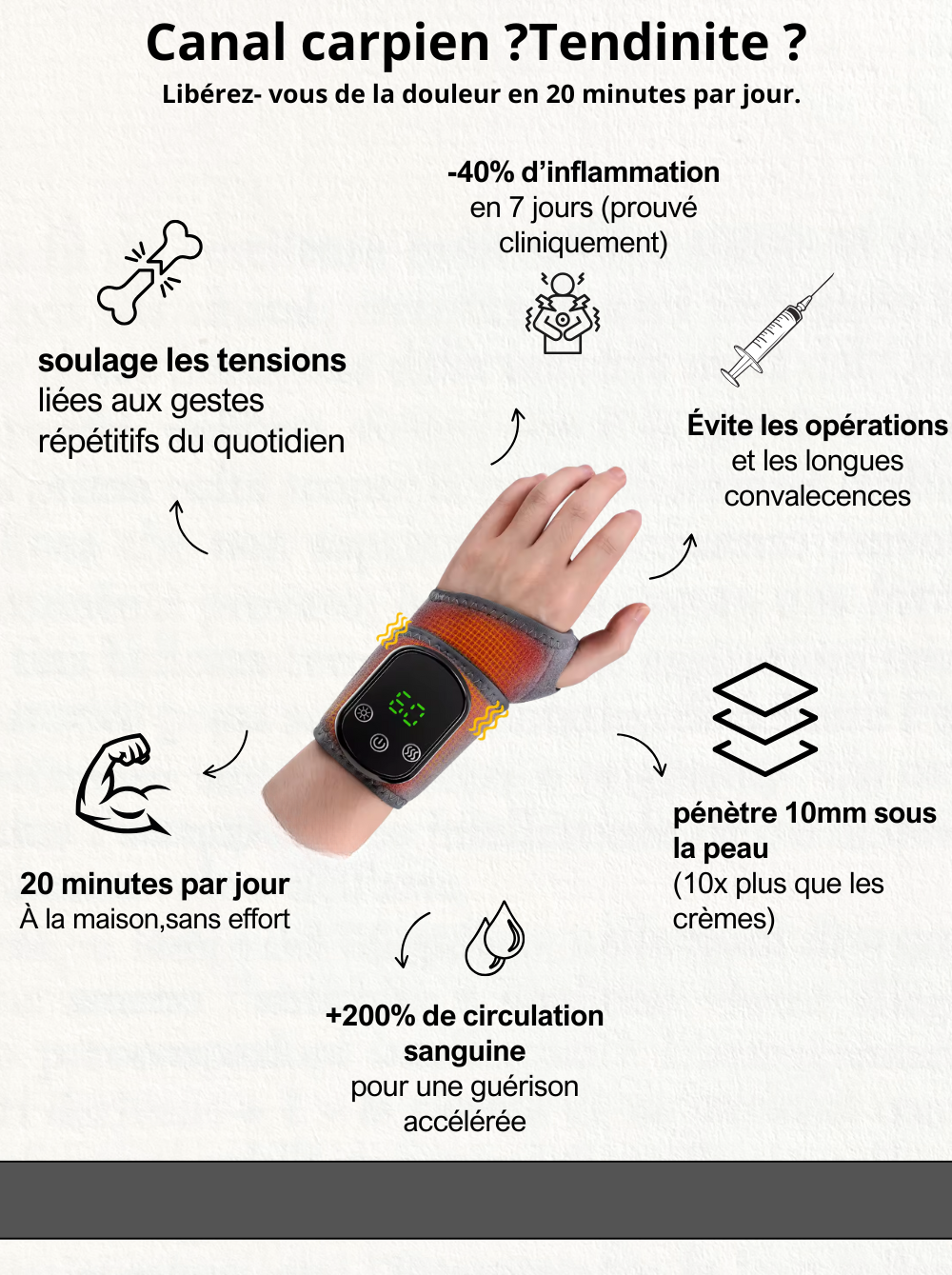 Très efficace pour soulager mes douleurs au poignet après le travail. La chaleur est un vrai plus.